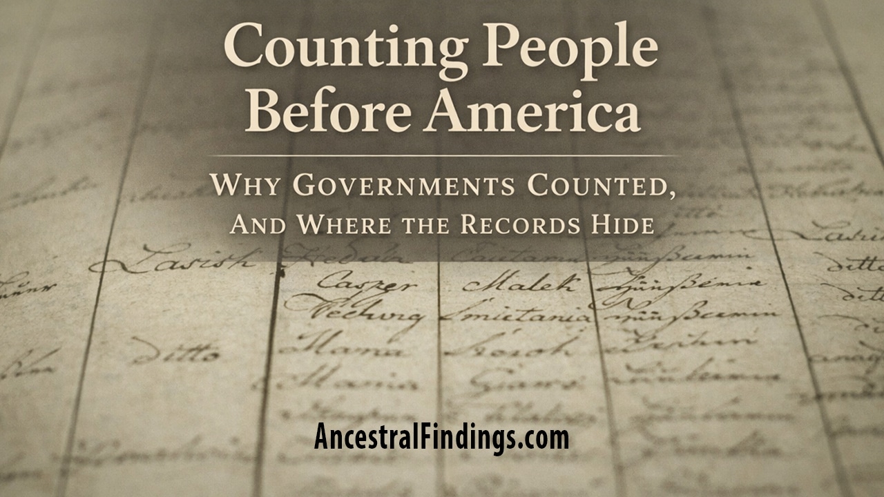 Part 1 is out today, and it starts before 1790. It covers the earlier “census-like” records that can fill gaps when the federal census has not yet been conducted.